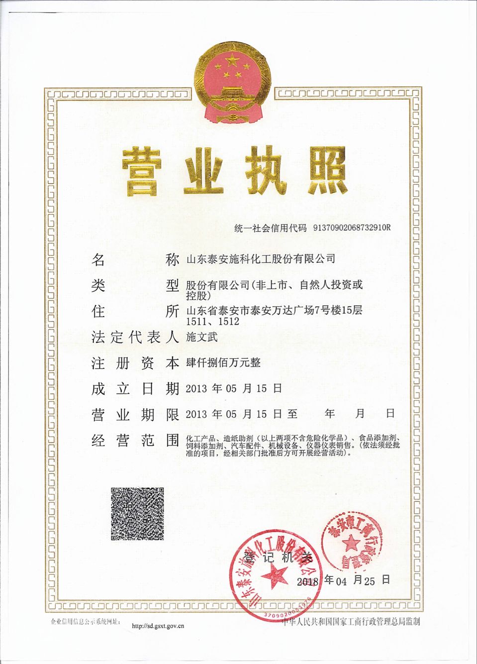 山東泰安施科化工股份有限公司